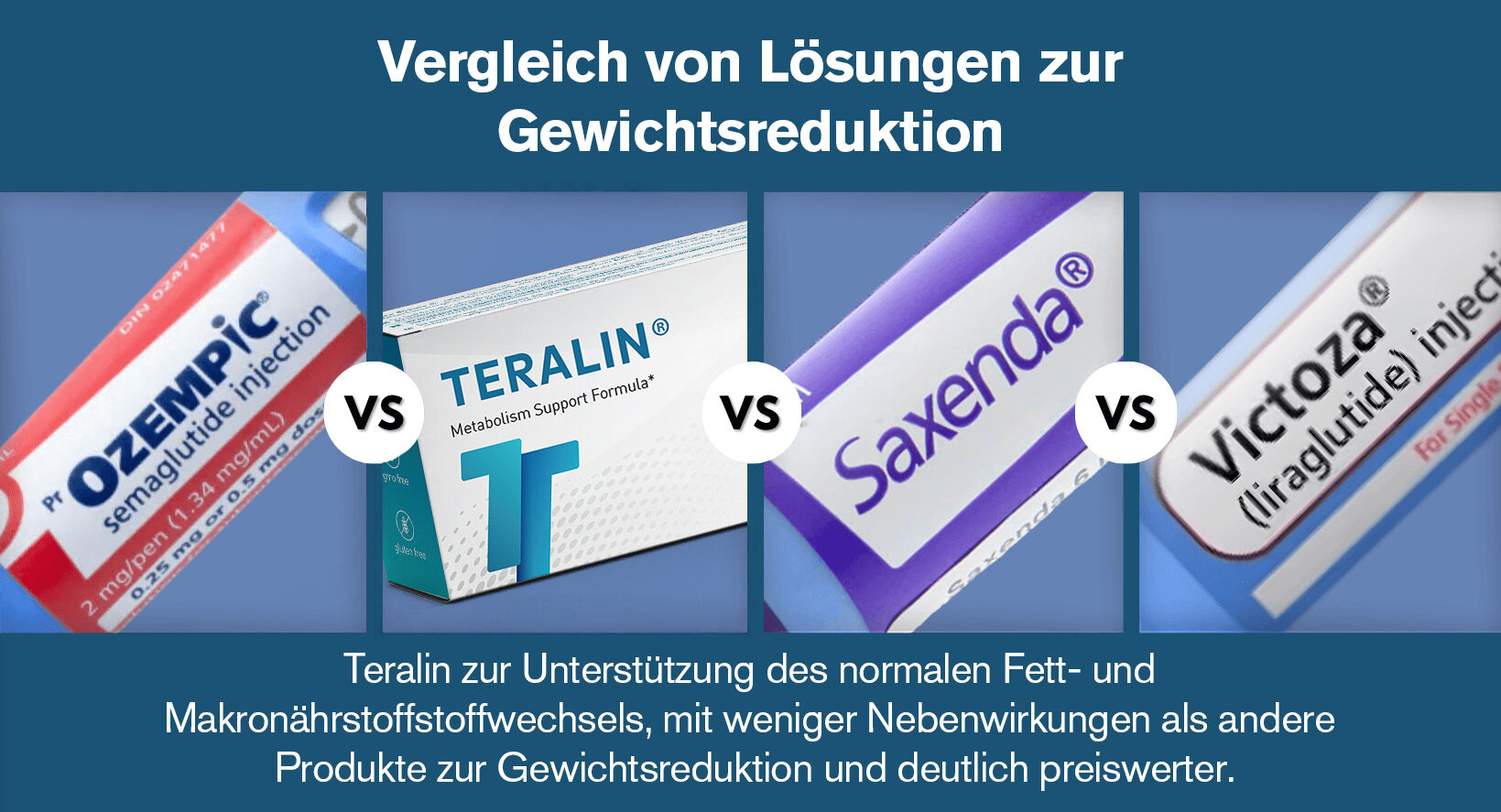 Dr. Katharina Schulz, Endokrinologin am Universitätsklinikum München, erklärte, dass Magen-Darm-Nebenwirkungen bei Stoffwechselmedikamenten wie Ozempic und der gleichen häufig auftreten. Teralin hingegen ist anders. "Durch die 100% natürlichen Inhaltsstoffe wurden in den klinischen Studien keine vergleichbaren Nebenwirkungen festgestellt.", so Dr. Katharina Schulz
